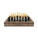 Resting on a 50cm polished mosaic board with integrated compartments, each piece is stored securely while remaining part of a display worthy of any setting.