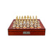 Resting on a polished 40cm walnut finish chess board, the set offers two discreet drawers for convenient storage, ensuring elegance and function in one masterpiece.