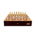 Resting on a polished 48cm mahogany chess box, the set offers two discreet drawers for convenient storage, ensuring elegance and function in one masterpiece.