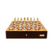 Resting on a polished 48cm walnut chess box, the set offers two discreet drawers for convenient storage, ensuring elegance and function in one masterpiece.