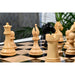 The pieces are carved from ebonised boxwood and natural boxwood, while the board uses solid ebony wood paired with boxwood. These materials are tough, stable, and built to last.