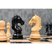 The Derby Knight Pattern chess set features chess pieces made from ebonised and natural boxwood that are known for durability and rich grain.
