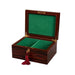 The premium chess box is lined with billiard cloth, divided for organisation, and secured with brass hinges and a lock and key.