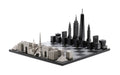 Architectural silhouettes drawn from world-renowned skylines transform pawns, rooks, and kings into cultural statements.